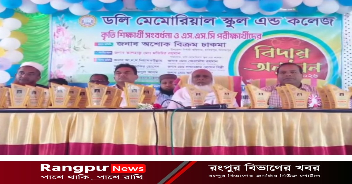দিনাজপুরের হাকিমপুর উপজেলার বাংলাহিলিতে অবস্থিত ডলি মেমোরিয়াল স্কুল অ্যান্ড কলেজের উদ্যোগে আজ ৯ এপ্রিল ২০২৬, বৃহস্পতিবার সকাল ১০টায় কৃতি শিক্ষার্থী সংবর্ধনা ও এসএসসি পরীক্ষার্থীদের বিদায় অনুষ্ঠান-২০২৬ স্কুল মাঠে অনুস্ঠিত হয়।