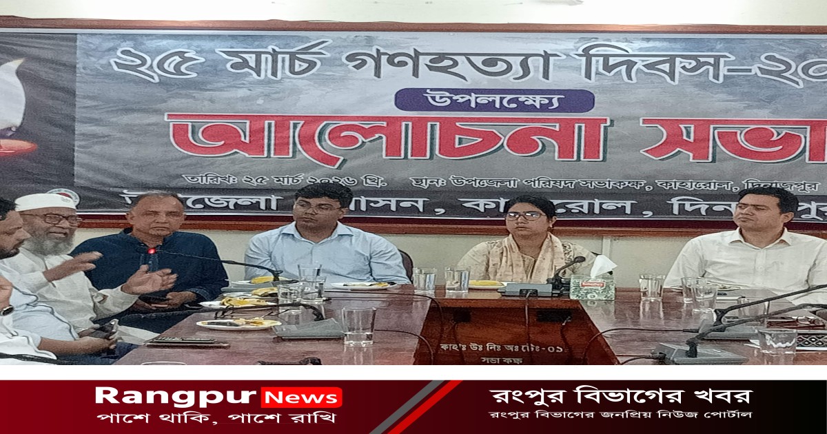 দিনাজপুরের কাহারোলে ২৫ মার্চ গনহত্যা দিবস উপলক্ষে আলোচনা সভা অনুষ্ঠিত হয়েছে।