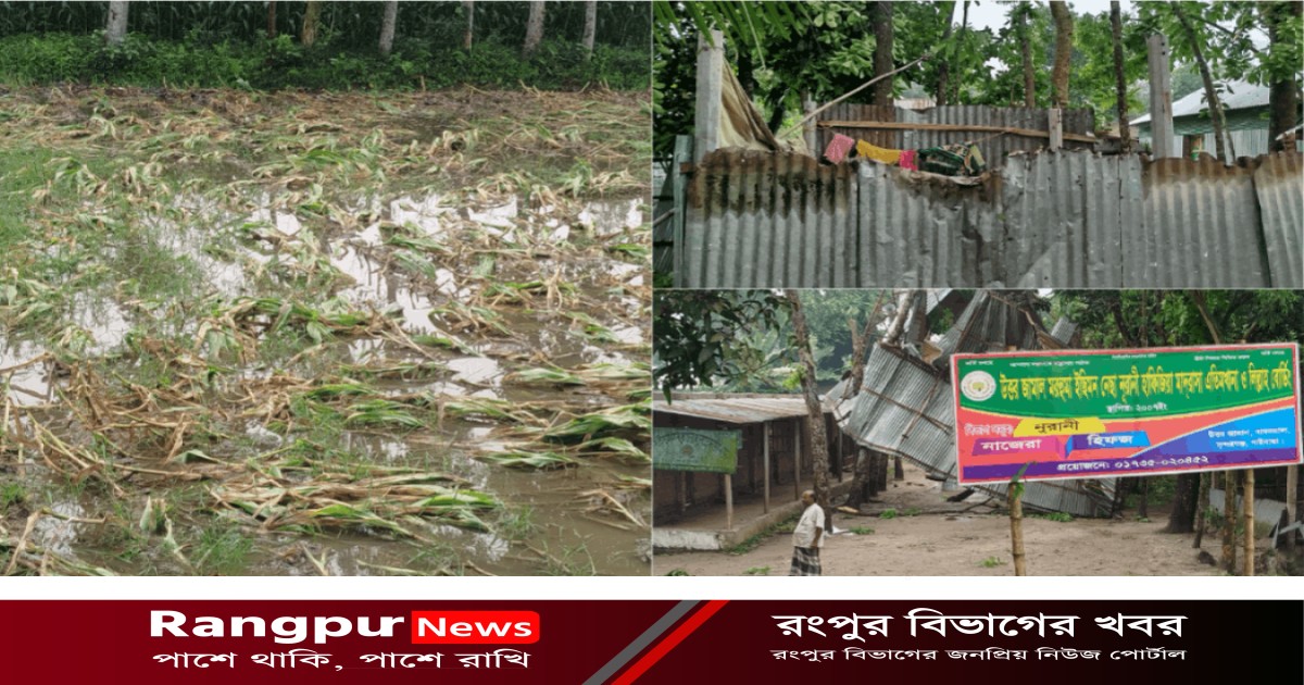 সুন্দরগঞ্জের বামনডাঙ্গায় ভোরে আকস্মিক কালবৈশাখি ঝড়ে লন্ডভন্ড অর্ধ শতাধিক বাড়িঘর, ভুট্টা ও কলাবাগানের ব্যাপক ক্ষতি হয়েছে।