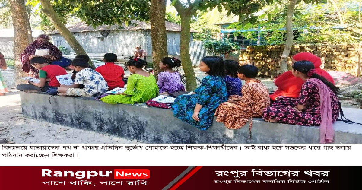 বিদ্যালয়ে যাওয়ার পথ নেই গাছতলায় পাঠদান শিক্ষার্থীদের