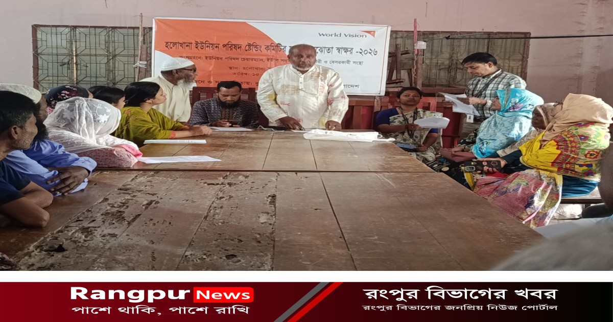 কুড়িগ্রাম সদর উপজেলার ২নং হলোখানা ইউনিয়ন পরিষদের ষ্টেন্ডিং কমিটি সমূহ সাথে ওয়ার্ল্ড ভিশনের সমঝোতা চুক্তি স্বাক্ষর-২০২৬ অনুষ্ঠিত হয়েছে।