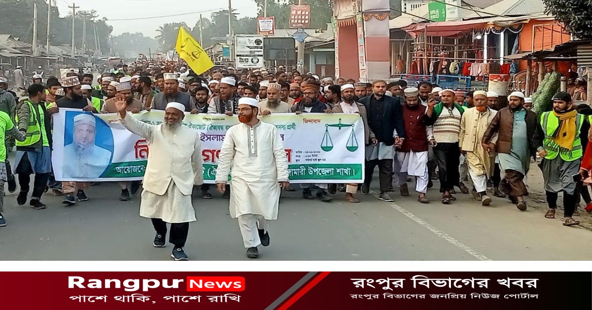 নাগেশ্বরীতে ১০ দলীয় জোট জামায়াত মনোনীত দাঁড়িপাল্লা প্রতীকের সমর্থনে মিছিল