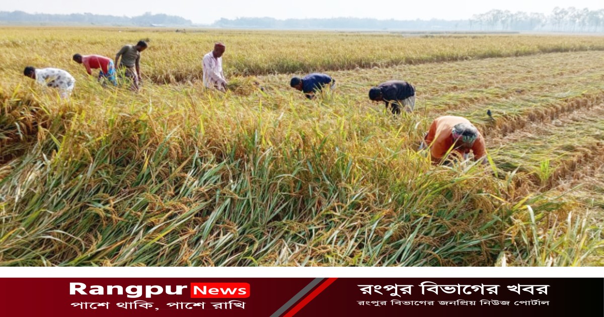 নীলফামারীর কিশোরগঞ্জে ধান কাটা ও মাড়াইয়ে ব্যস্ত কৃষকরা