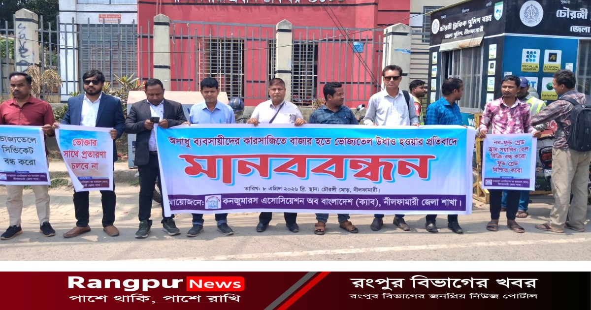 নীলফামারীতে ভোজ্যতেল উধাওয়ের প্রতিবাদে মানববন্ধন