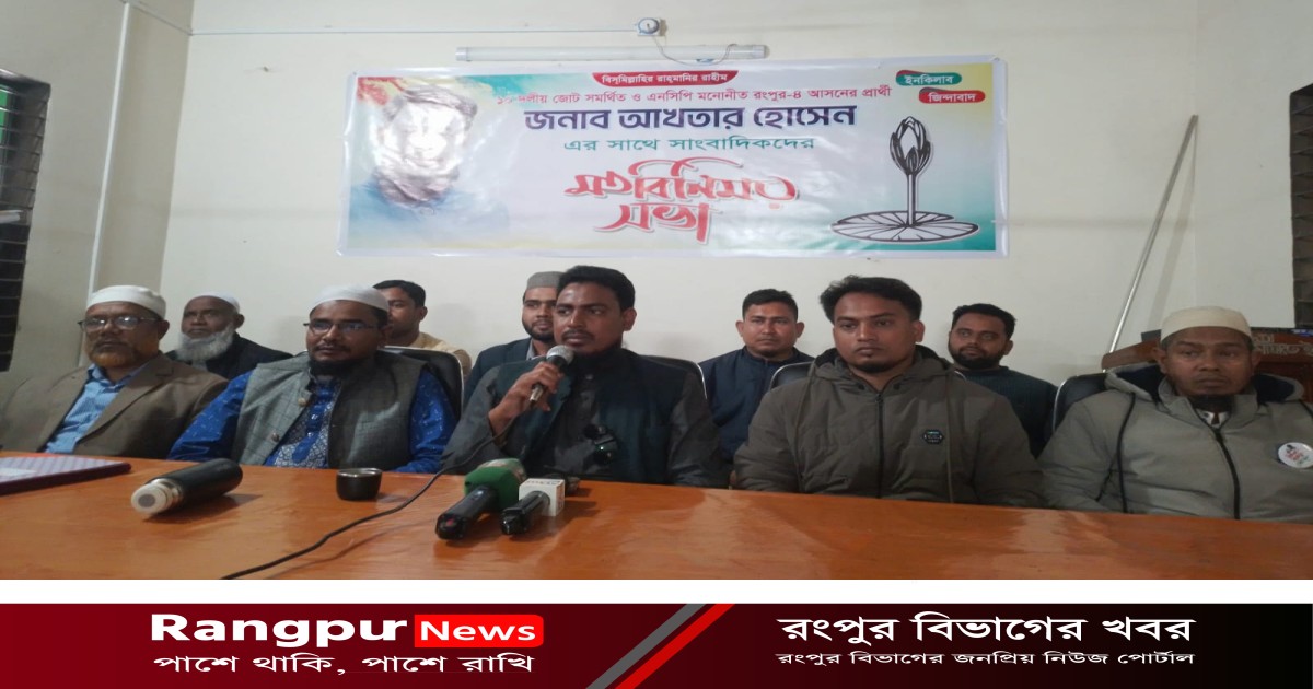 রংপুর-০৪ (পীরগাছা–কাউনিয়া) আসনে ১০ দলীয় জোট সমর্থিত ও জাতীয় নাগরিক পার্টি (এনসিপি) মনোনীত প্রার্থী, দলের সদস্য সচিব আখতার হোসেন পীরগাছায় কর্মরত সাংবাদিকদের সঙ্গে এক মতবিনিময় সভা করেছেন।