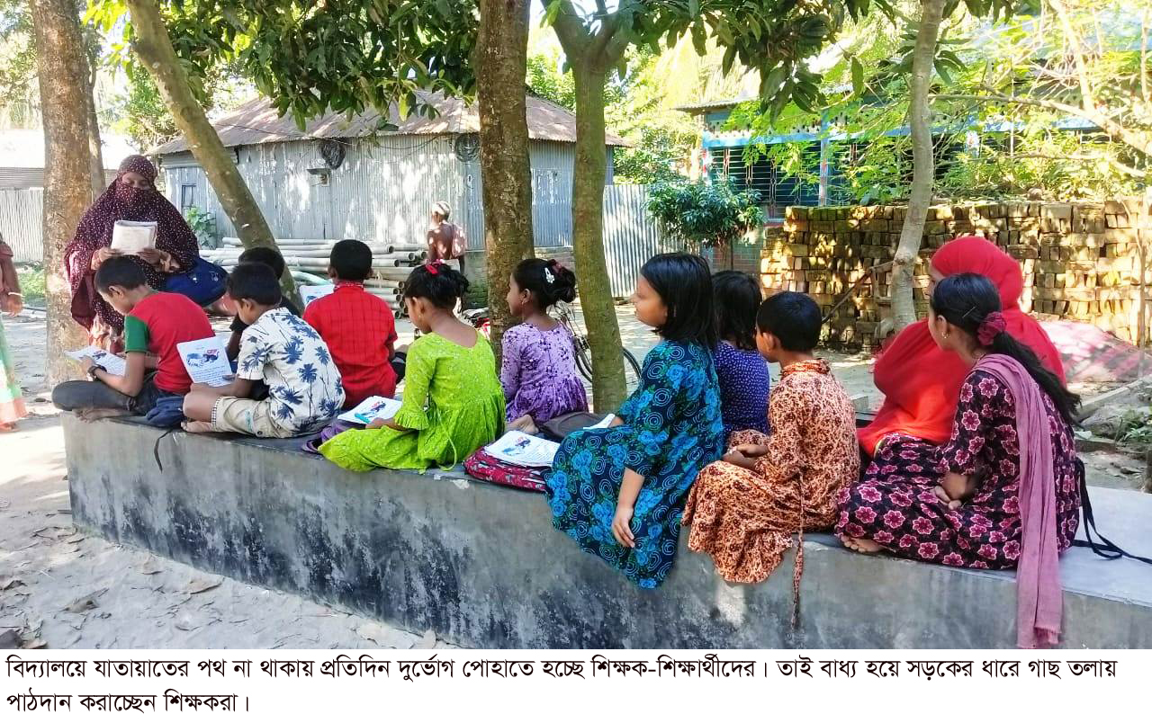 বিদ্যালয়ে যাওয়ার পথ নেই গাছতলায় পাঠদান শিক্ষার্থীদের