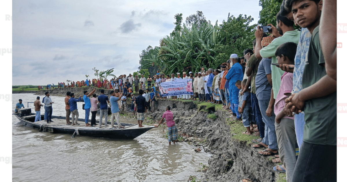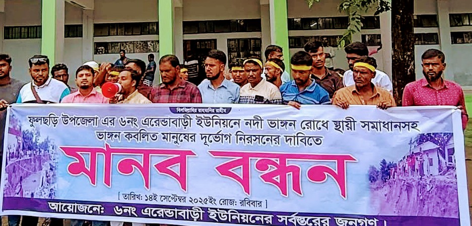 ফুলছড়িতে ব্রহ্মপুত্র নদের ভাঙন প্রতিরোধে ব্যবস্থা গ্রহণ ও স্থায়ী সমাধানের দাবিতে মানববন্ধন